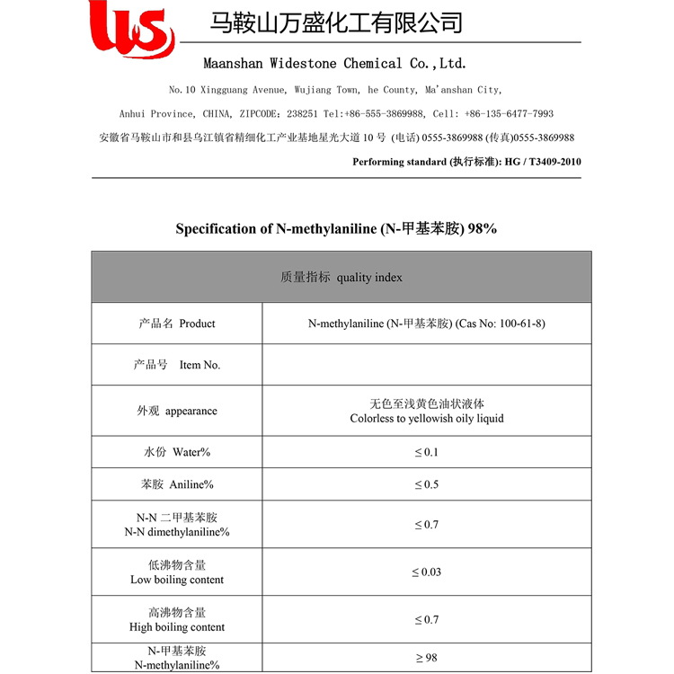 Specification of N-methylaniline (N-甲基苯胺) 98%